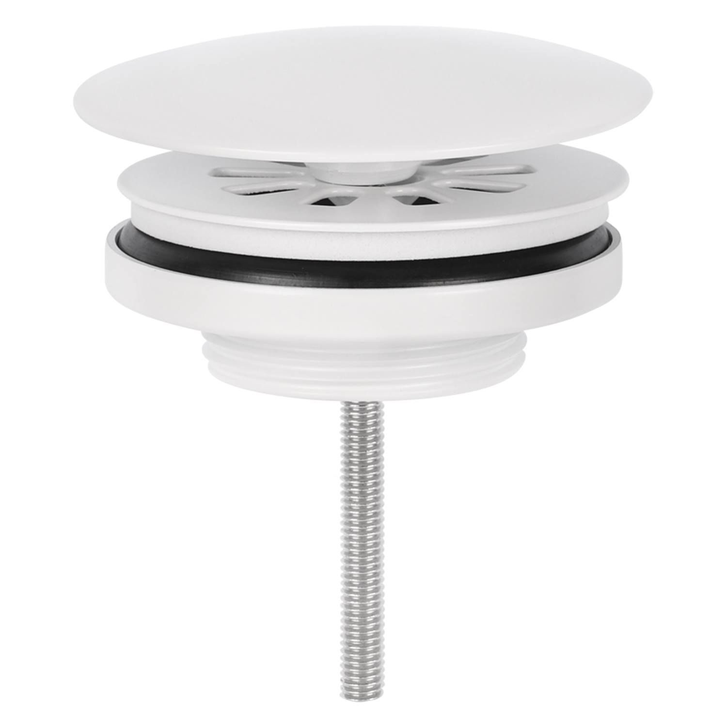 Met deze afvoerplug maakt u het design van uw wastafel helemaal af. Deze plug staat standaard open en wordt niet afgesloten. De plug is gemaakt van messing en afgewerkt in Mat Wit. Ook verkrijgbaar in mat chroom, mat zwart, rood koper, chroom, gunmetal en goud.