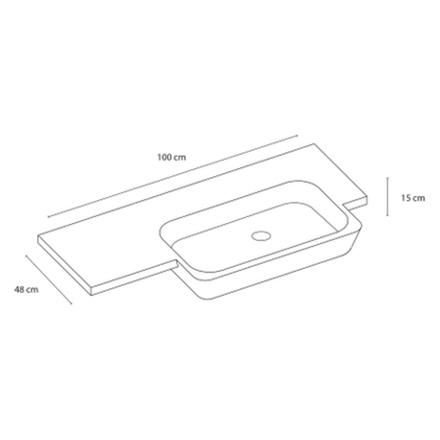 Deze wastafel van Differnz Fabulous onderscheidt zich met zijn bijzondere design. Opvallend, maar toch tijdloos en gemakkelijk te combineren met allerlei stijlen. De wastafel is 100 cm breed, 20 cm hoog en 48 cm diep. Hij heeft 1 kraangat en een overloop. Exclusief afvoer en sifon. De wastafel is van polybeton.
