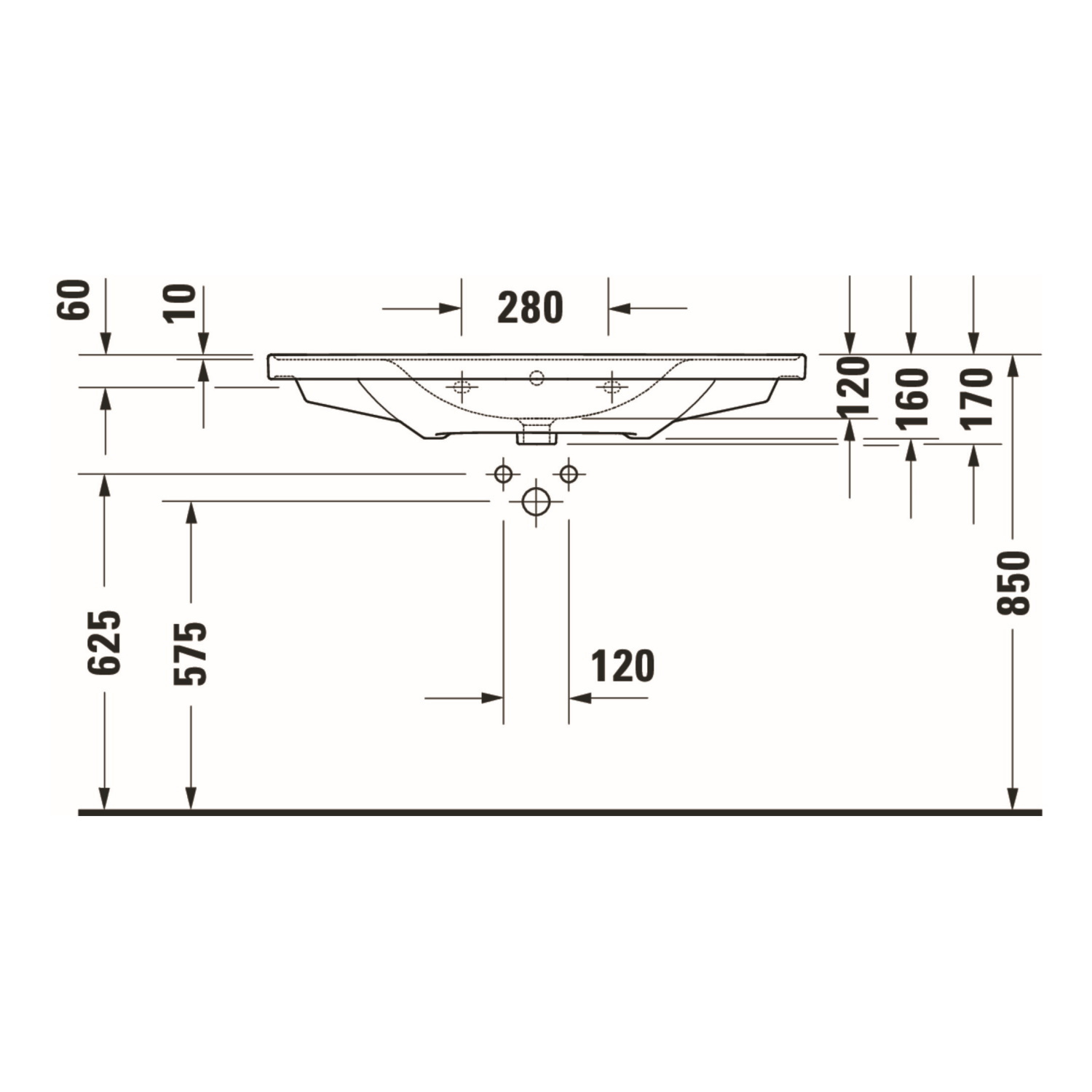 Deze wastafel heeft een rechthoekige vorm en heeft een frisse witte kleur. De diepte van de wastafel is 48 cm, de breedte 100.5 cm en het heeft een hoogte van 17 cm. In het midden van de wastafel bevinden zich een kraangat en overloop.