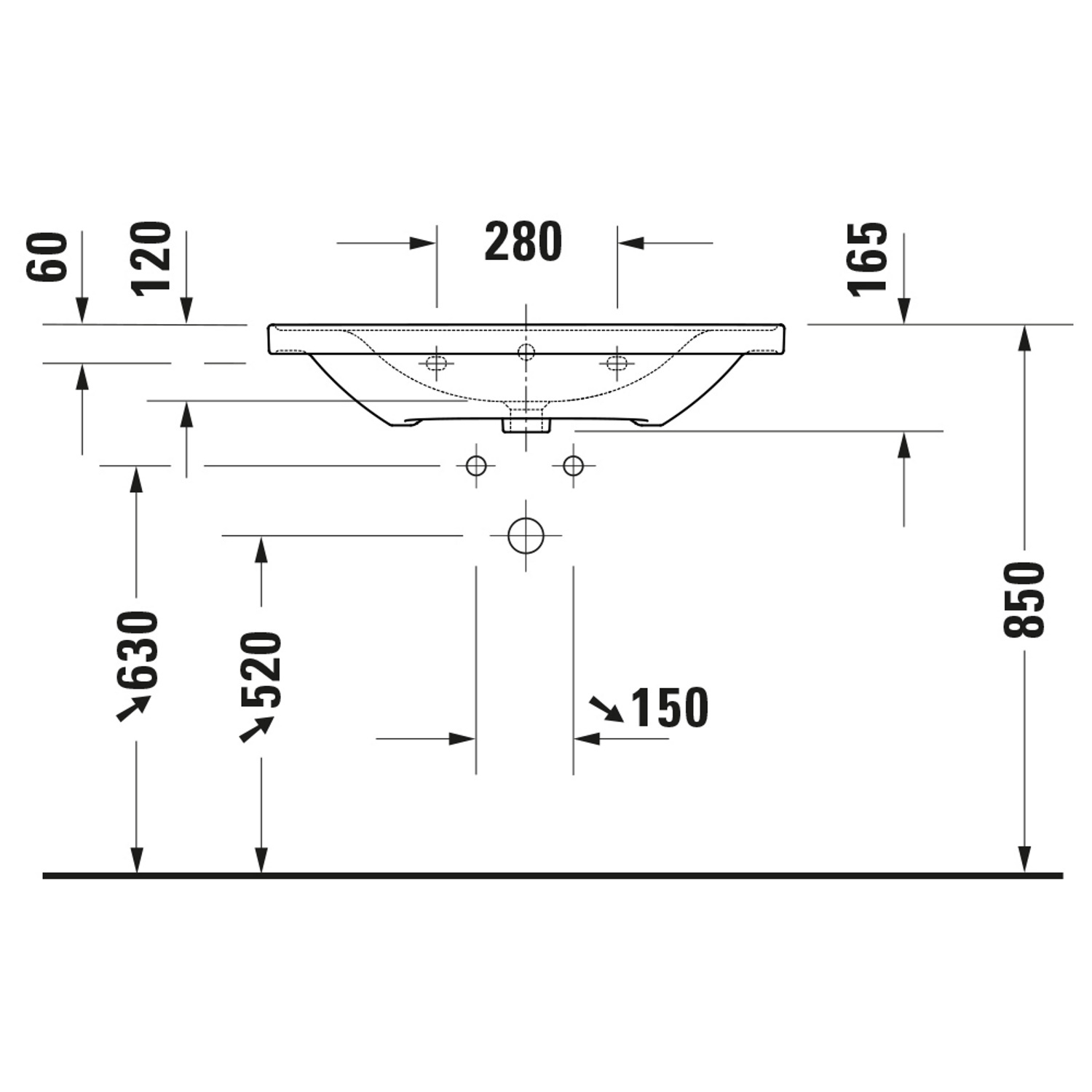 Deze wastafel heeft een rechthoekige vorm en heeft een frisse witte kleur. De diepte van de wastafel is 48 cm, de breedte 80 cm en het heeft een hoogte van 16.5 cm. In het midden van de wastafel bevinden zich een kraangat en een overloop.