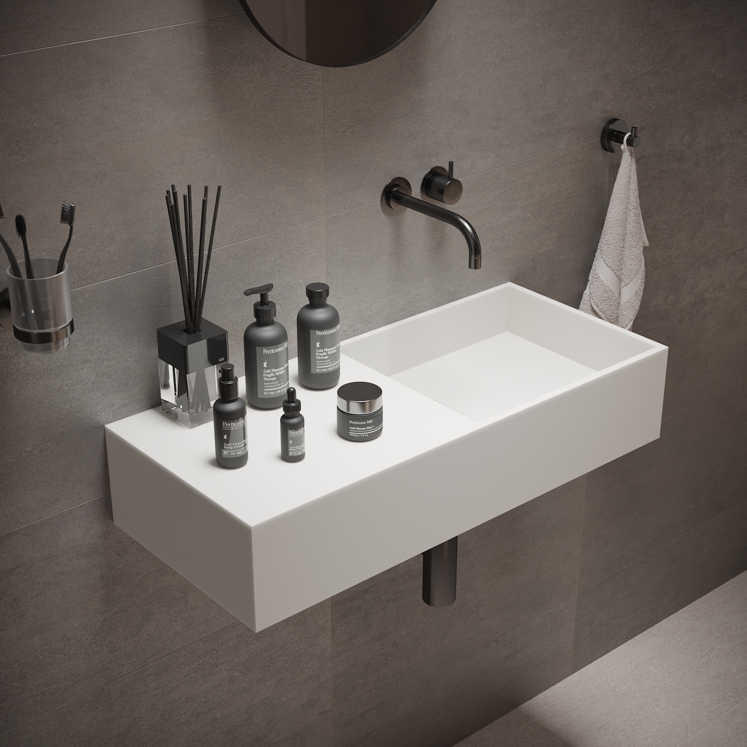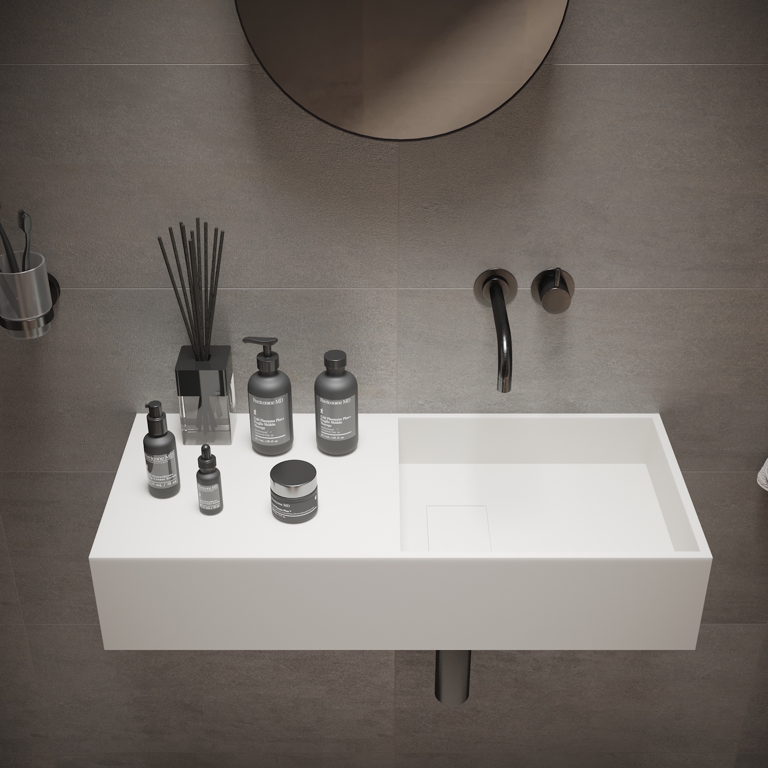 Solid Surface is uitstekend geschikt om sanitaire producten van te maken omdat het geen poriën en naden heeft. Solid Surface is een composiet, geproduceerd uit mineralen en harsen. Bovendien is dit materiaal bestendig tegen vocht, vlekken, en zelfs chemische stoffen. Er trekt dus niets in, is niet poreus en heeft een intense kleur en is gemakkelijk schoon te houden. Omdat het door en door van hetzelfde materiaal bestaat, kunnen eventuele beschadigingen weg gepolijst worden. Perfect om de hygiëne te behouden in uw design badkamer of toilet.
