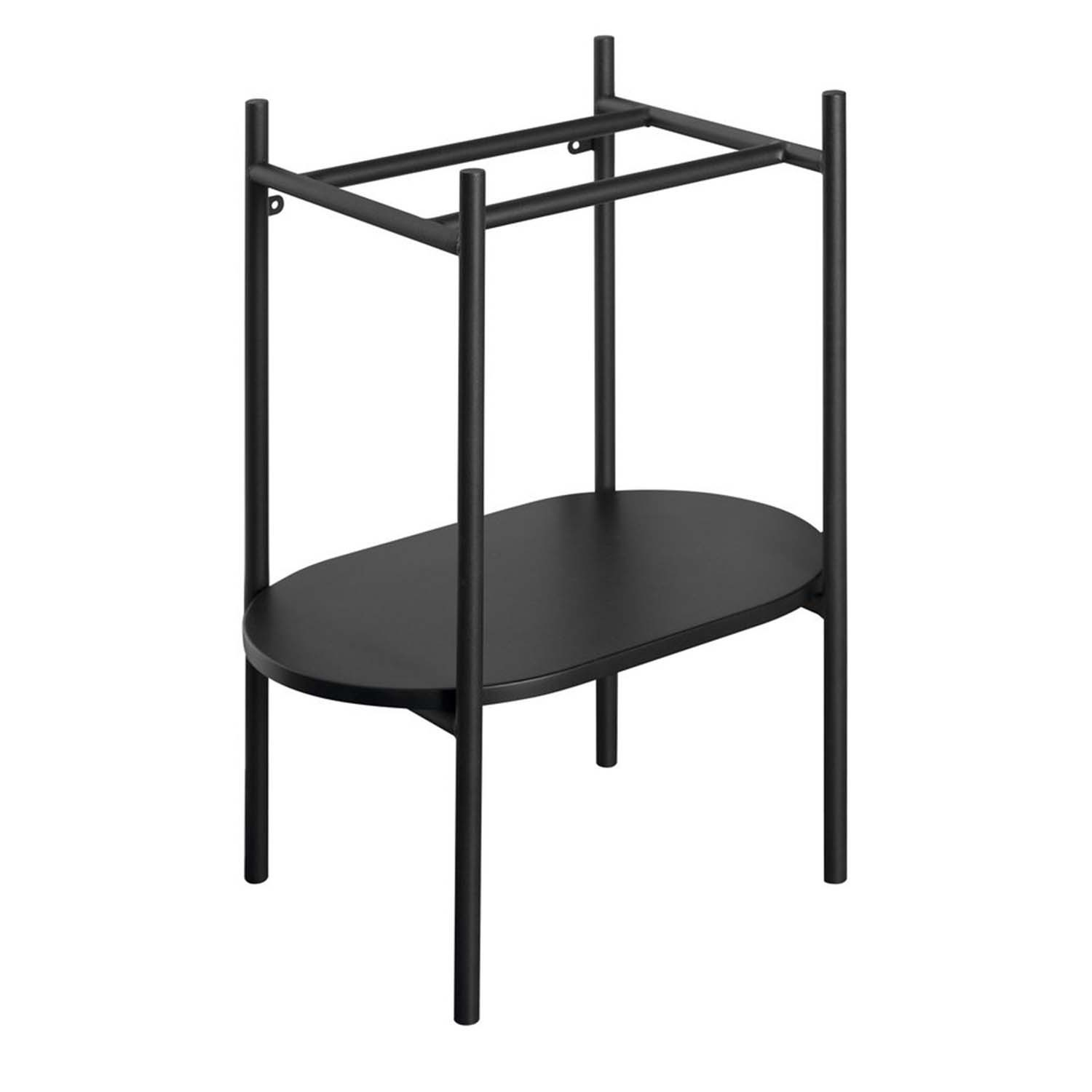 Dankzij de handige legplank aan de onderkant kunt u ook nog eens een hoop spullen kwijt. Denk bijvoorbeeld aan uw handdoeken of verzorgingsproducten. Het frame is gemaakt van staal en uitgevoerd in een mat zwarte kleur. Daardoor is hij een aanwinst voor iedere moderne badkamer.