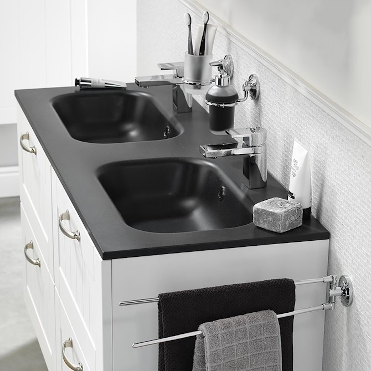 Met zijn vloeiende rondingen is de Oval wastafel van Tiger een echte blikvanger in de badkamer. De wastafel is gemaakt van polybeton, ook wel kunst- of mineraalmarmer genoemd. Polybeton wastafels zijn hygiënisch en makkelijk in onderhoud. De wastafel bevat twee overlopen en kraangaten. Voor de overloopgaten worden chromen en zwarte sierringen meegeleverd.