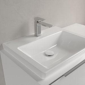Deze wastafel is 60 cm breed, 47 cm diep en 16.5 cm hoog en is gemaakt van TitanCeram. Dat is een duurzaam materiaal dat door Villeroy & Boch zelf wordt gecreëerd door verschillende grondstoffen te versmelten. Het is extra stevig waardoor de wasbak lang mee gaat. Op de brede kranenbank past makkelijk een zeepdispenser en de dunne randen en het diepe bekken zorgen ervoor dat er genoeg ruimte is om de handen te wassen.