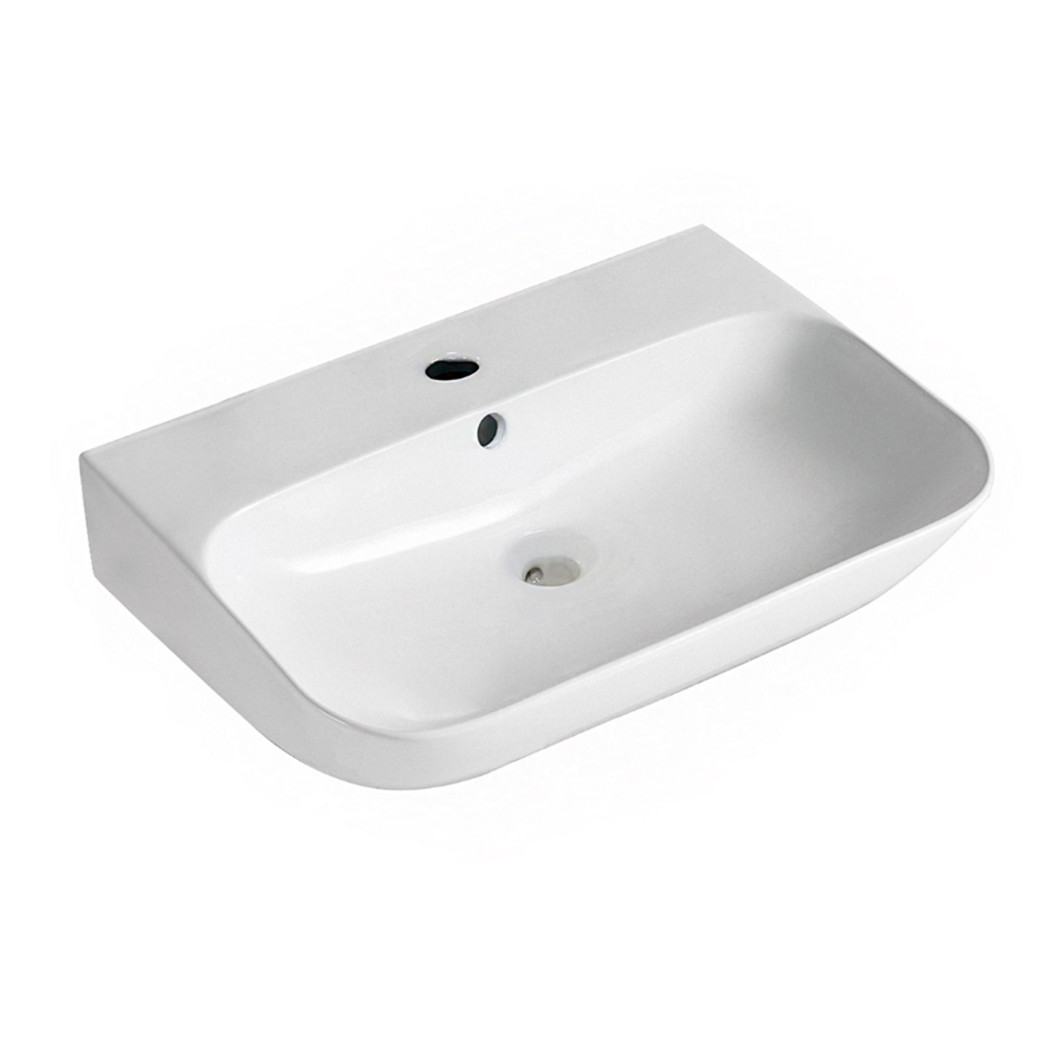 Deze stijlvolle vrijhangende wastafel uit de Finta collectie van Wiesbaden, is ideaal voor in de badkamer of in de toiletruimte. De wastafel heeft een rechthoekige vorm die in de hoeken mooi is afgerond. Het glanzende keramiek kan goed tegen een stootje en is eenvoudig schoon te maken. De wastafel heeft een afmeting van 16.5 cm hoog, 65.5 cm breed en 42 cm diep. Kies een mooie kraan en waste naar uw stijl, deze zijn niet inbegrepen.