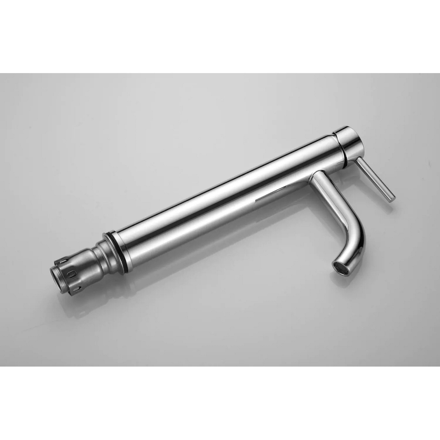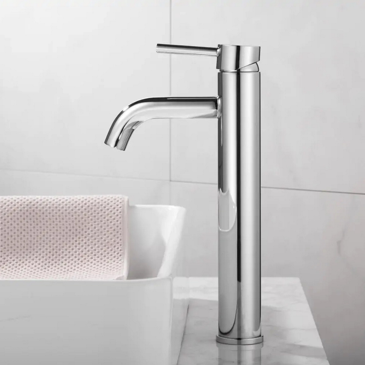 Deze stijlvolle hoge wastafelmengkraan uit de Plus serie van AquaSplash is speciaal ontworpen voor bij waskommen. De kraan en uitloop zijn hoger dan bij een normale wastafelkraan, waardoor deze perfect gecombineerd kan worden met een waskom. Deze mengkraan kunt u eenvoudig bedienen met één hendel. Om het water te laten stromen haalt u de hendel omhoog. Beweeg de hendel naar links en rechts om de gewenste temperatuur te bepalen. Het warme en koude water wordt met elkaar vermengd tot de juiste temperatuur.