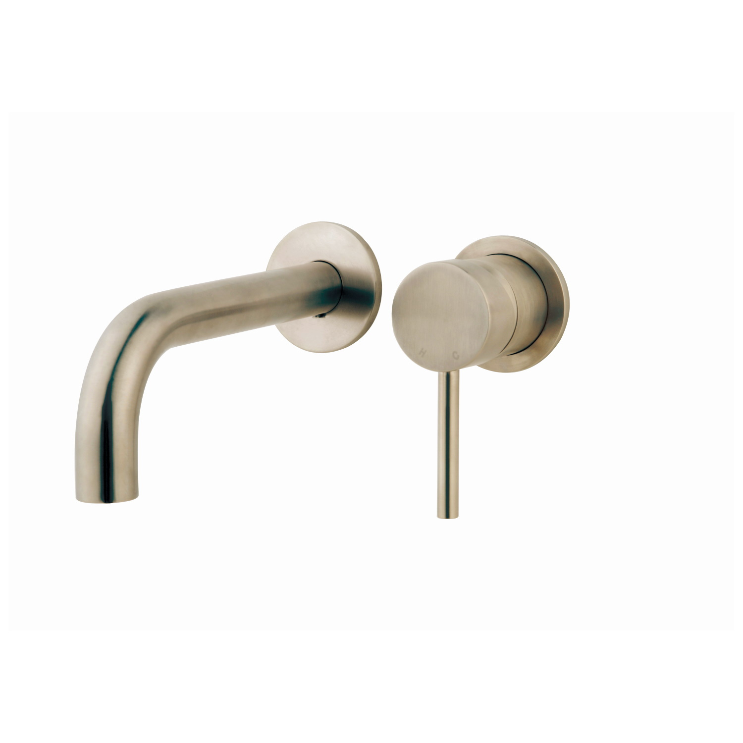 Steeds vaker ziet u elementen met RVS look voorkomen in de badkamer of toiletruimte. Deze wastafelkraan met RVS look is een wandmodel. Dat wil zeggen dat de kraan uit de muur komt en niet op uw wastafelblad of wastafel bevestigd zit. Een inbouw wastafelkraan is heel goed te combineren met een opbouw waskom of een brede geïntegreerde wastafel. Het ene deel is de uitloop met een lengte van 19.3 cm en is in zijn totaliteit 10 cm hoog. De wandkraan hangt u op een prettige hoogte op. Met een opbouw waskom zit de kraan vaak iets hoger gemonteerd dan bij een wastafel dat in het blad is verzonken. Het andere deel is de mengkraan. Met de hendel bepaald u zelf de temperatuur van het water voor een comfortabel gebruik. De kraan is uitgerust met keramische schijven. Bij een keramisch binnenwerk schuiven twee keramische plaatjes over elkaar dat zorgt dat het water geleidelijk doorloopt of stopt zodra u de hendel beweegt.