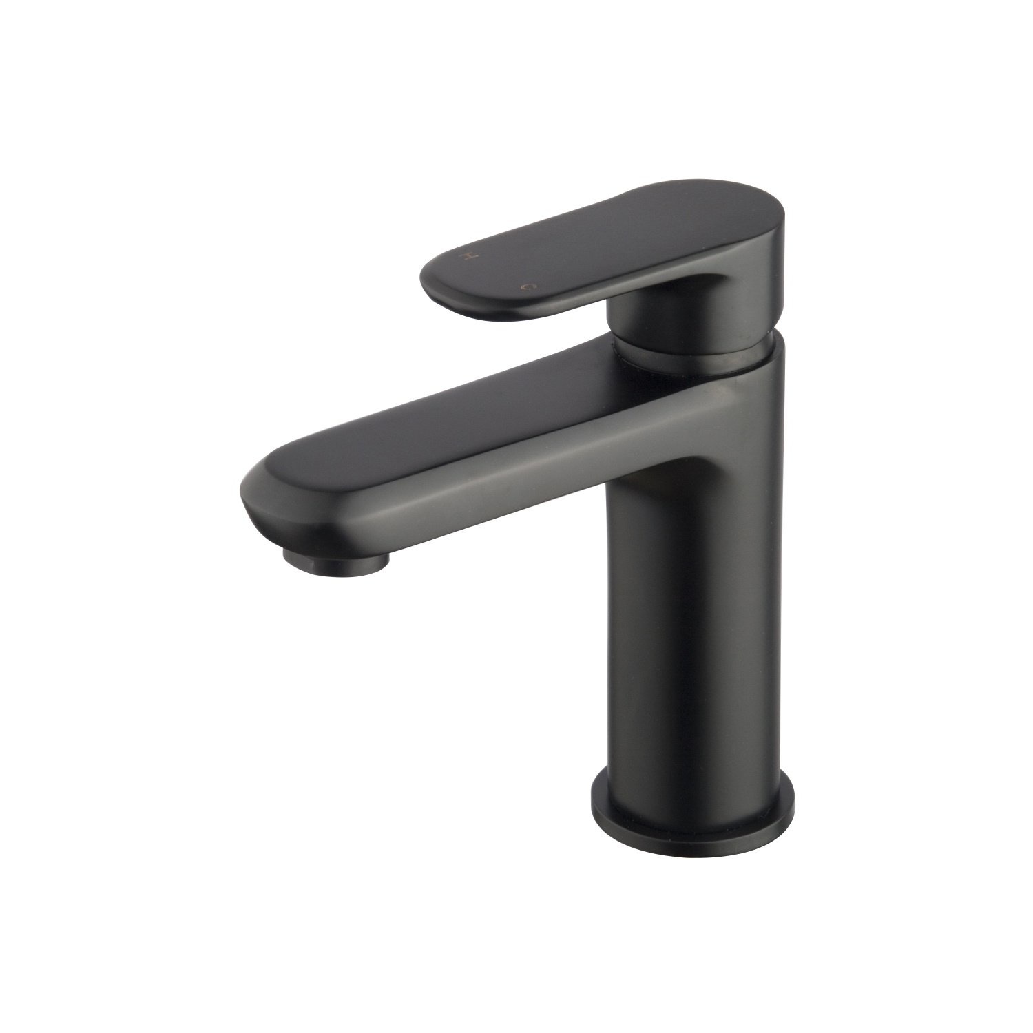 Deze wastafelkraan van Wiesbaden behoort tot de serie Trop. Het betreft een opbouw mengkraan die is gemaakt van messing en een afwerking heeft in een mat zwarte kleur. De compacte kraan heeft een hoogte van 15.8 cm en is aan de bovenzijde voorzien van een hendel. Met deze hendel stelt u eenvoudig de temperatuur en de kracht van de waterstraal in. Deze opbouw wastafelmengkraan is ook leverbaar in de kleuren chroom en geborsteld staal.