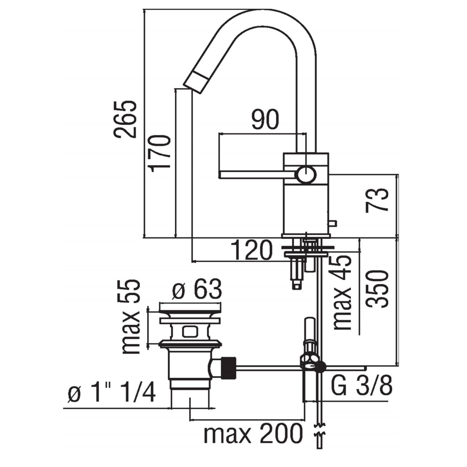 De wastafelmengkraan is 26.95 cm en de uitloop is 17 cm hoog.
