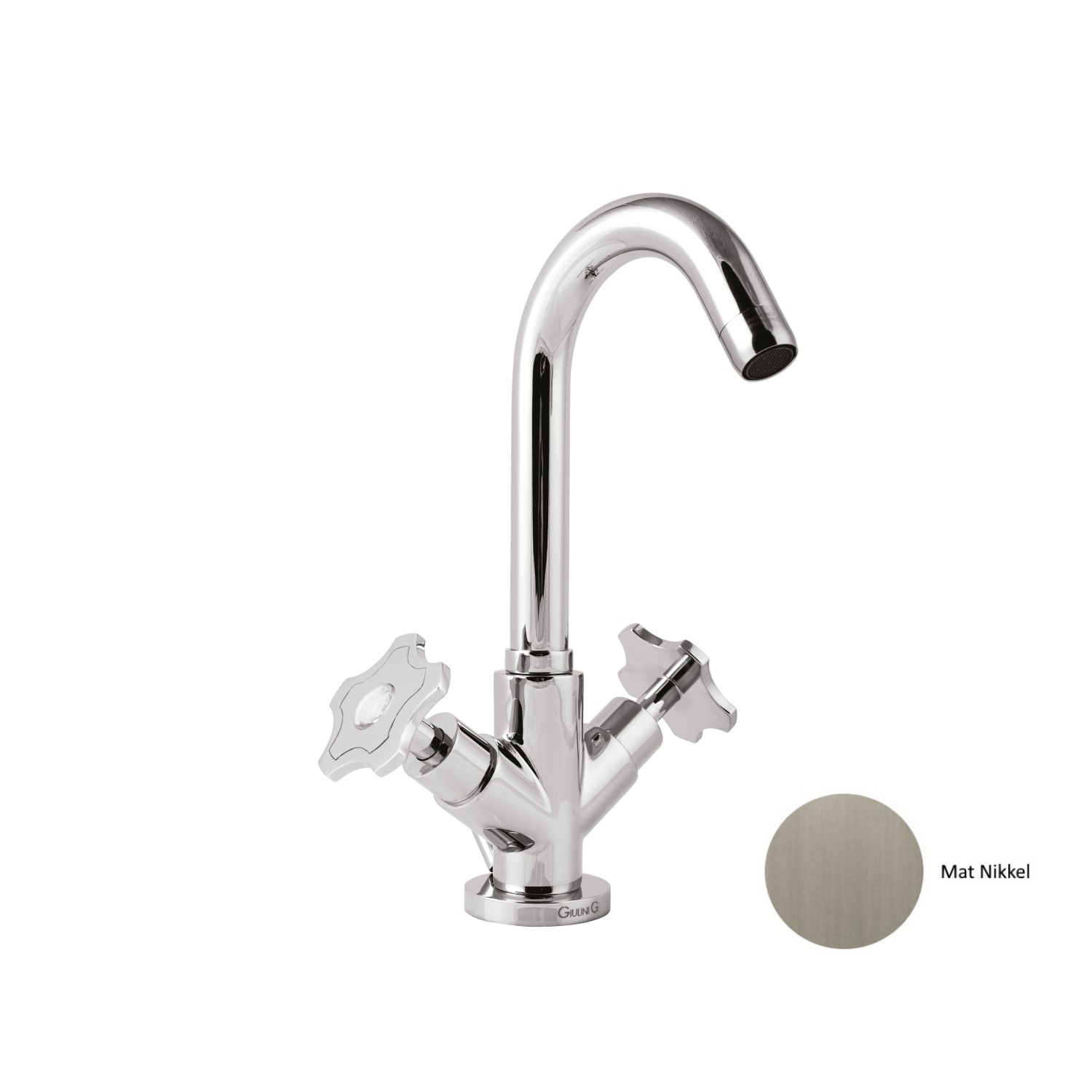De Giulini wastafelkraan van het merk Sanimex heeft een nikkel-kleurige afwerking en beschikt over twee grepen waarmee u de temperatuur van het water eenvoudig kunt regelen. De kraan bevat ook een draaibare uitloop. De draaibare uitloop maakt het mogelijk om een dubbele vaat met water te vullen. Verder wordt de kraan inclusief pop-up geleverd, dit wordt ook wel een klikwaste genoemd. De waste bestaat uit een hefboom-mechanisme dat de waterstop omhoog en omlaag beweegt. Een losse stop is hierdoor niet meer nodig.