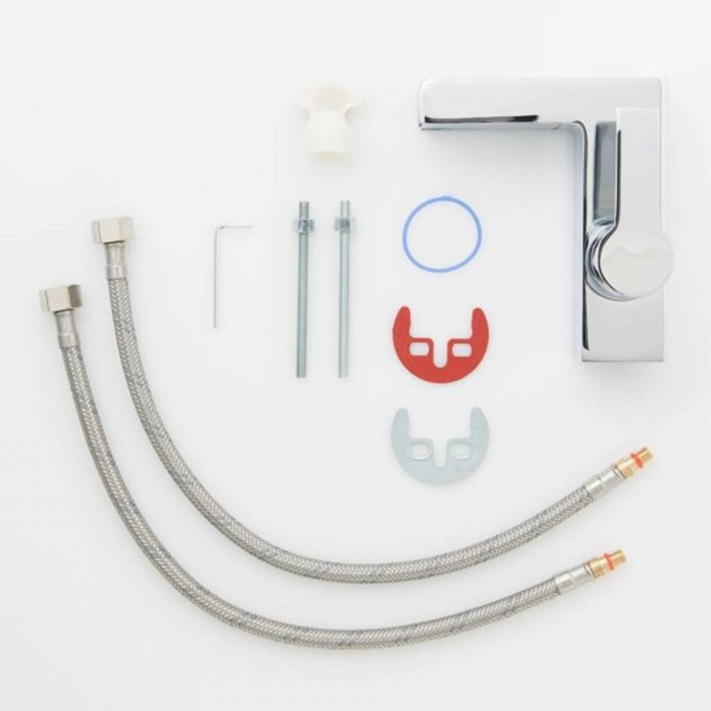 De wastafelkraan is verder uitgerust met keramische schijven die de temperatuur van het water regelen. Met de zijdelingse metalen greep zet u het water eenvoudig naar de gewenste temperatuur. De kraan beschikt tevens over een geluidloze en uitwisselbare 25 mm-cartouche en over flexibele metalen aansluitslangen die het monteren van deze kraan doodeenvoudig maken.