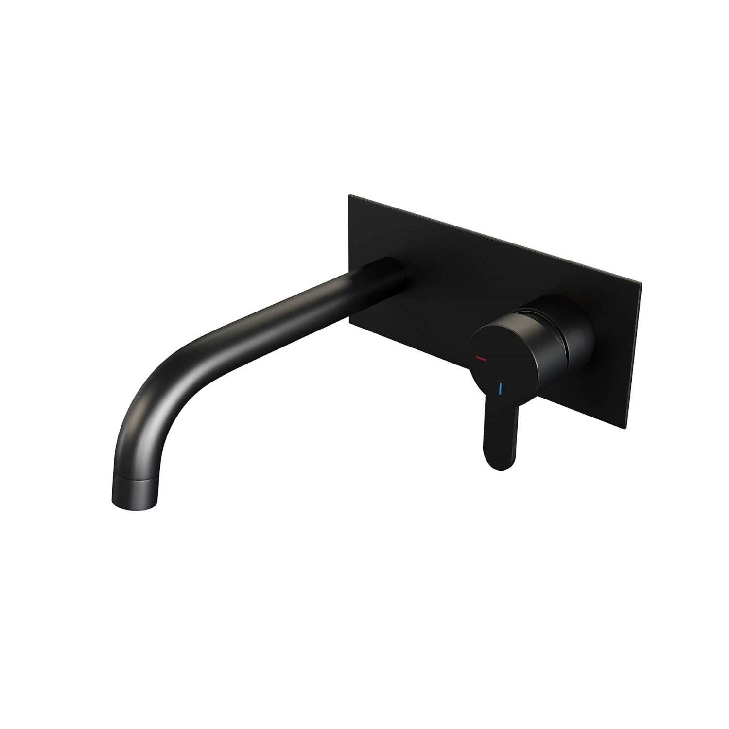 Specificaties Inbouw Wastafelmengkraan Brauer Black Edition Coldstart Gebogen Uitloop Korte Platte Hendel Rechts Mat Zwart Met Afdekplaat: