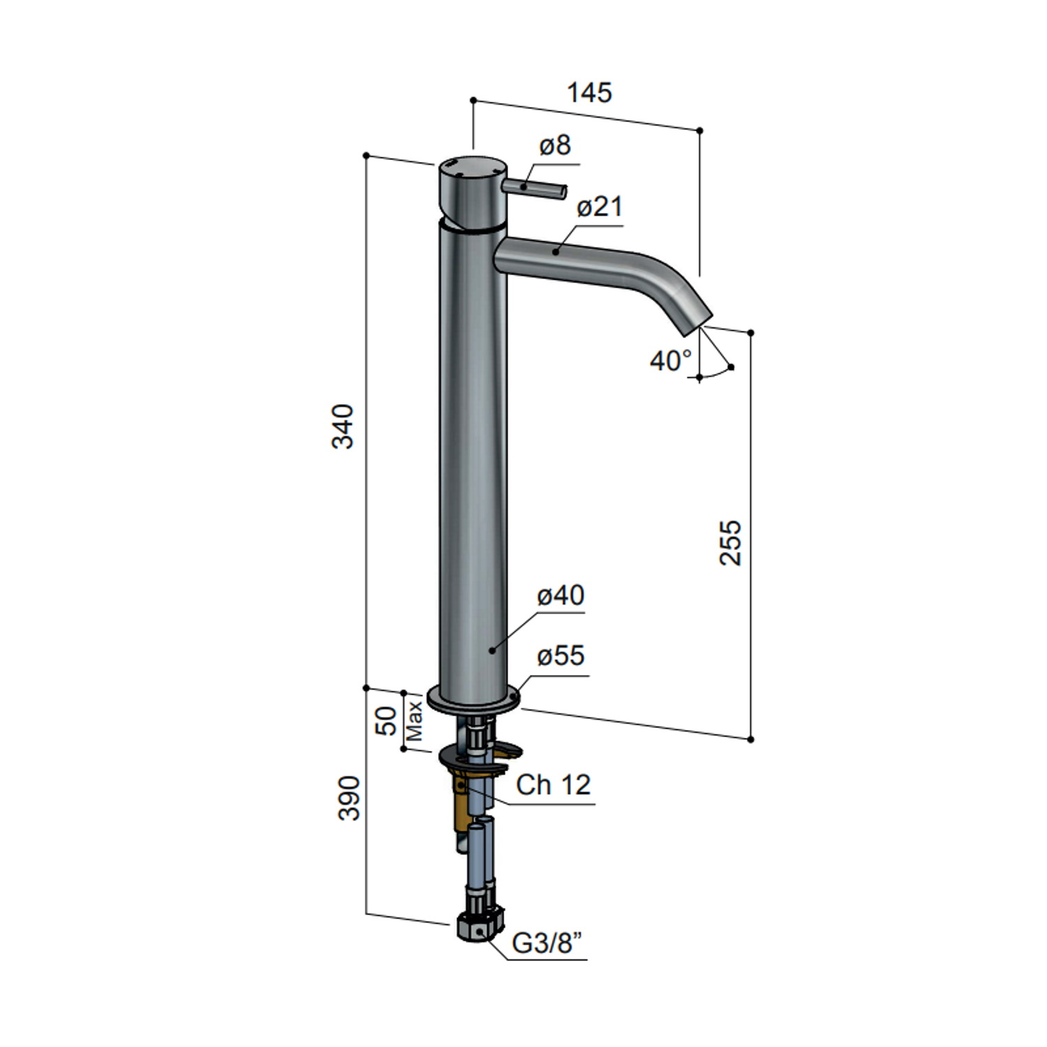 De kraan is 34 cm hoog, 4 cm breed en 24.5 cm hoog tot aan de uitloop. Met een mengkraan is het gemakkelijk om tot een juiste temperatuur te komen. Door de hendel te draaien, wordt warm en koud water met elkaar gemengd tot een gewenste temperatuur. Het