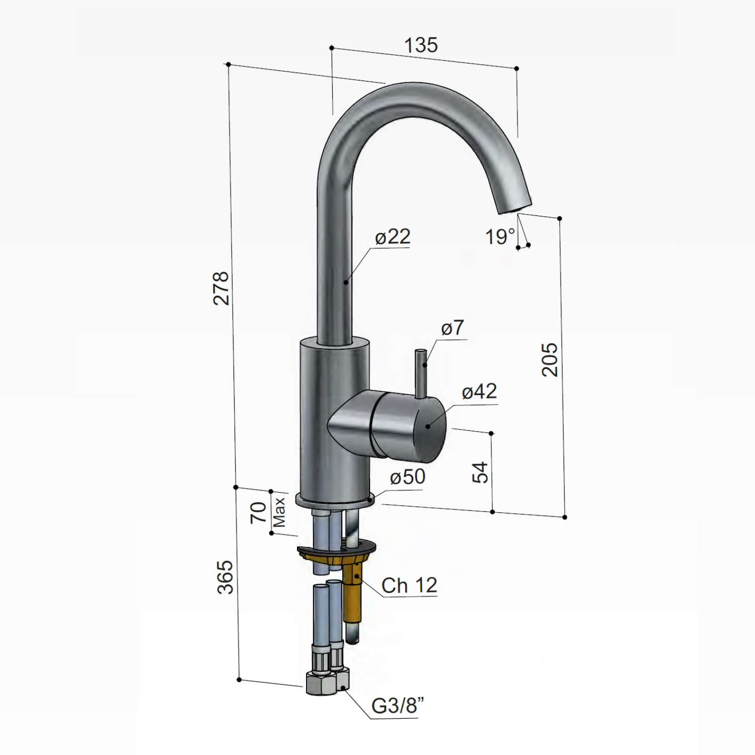De kraan heeft de hoogte van 27.8 cm. Ook heeft de kraan een keramisch binnenwerk, dit houdt de hendel jarenlang soepel in zijn beweging om water door te laten en de kraan goed te sluiten. De praktische kraan is afgewerkt in een geborsteld koperen kleur en wordt geleverd exclusief waste. Ook verkrijgbaar in meerdere kleuren!