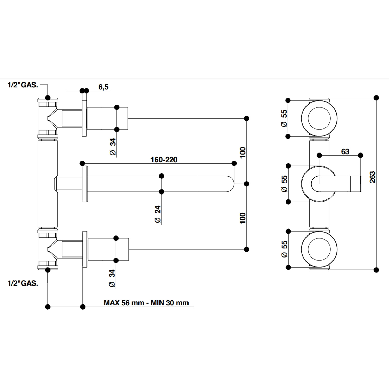 Deze kraan heeft een uitloop van 22 cm lang. Deze kraan heeft twee hendels. Eén voor warm en één voor koud water. Door beiden open te draaien mengt u het water tot de gewenste temperatuur. De totale breedte is 26,3 cm.