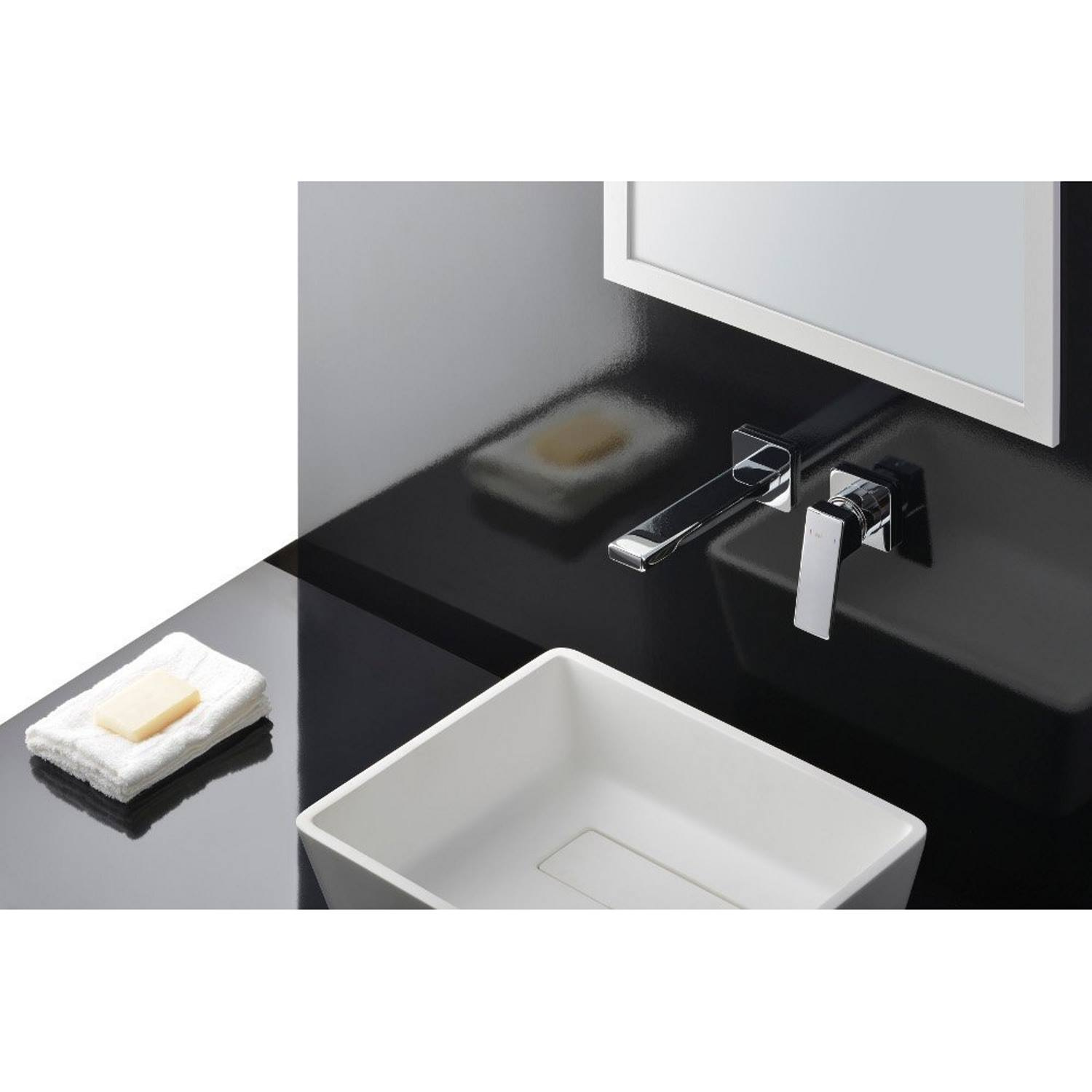 De uitloop heeft een lengte van 17.7 cm. De wastafelkraan dient in de wand bevestigd te worden en wordt exclusief waste geleverd.