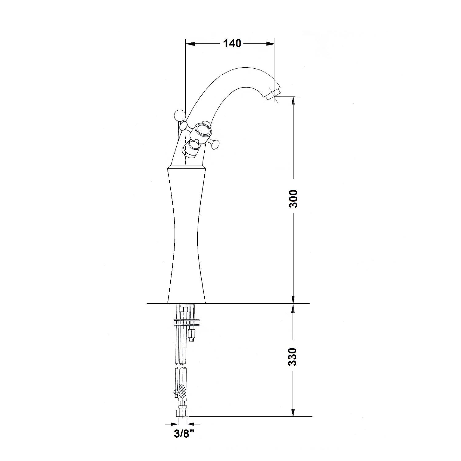 De uitloop heeft een hoogte van 30 cm en een diepte van 14 cm. De mengkraan is voorzien van een 3/8 inch aansluiting.