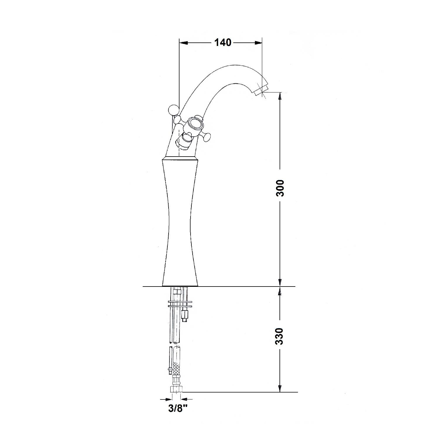 De uitloop heeft een hoogte van 30 cm en een diepte van 14 cm. De mengkraan is voorzien van een 3/8 inch aansluiting.