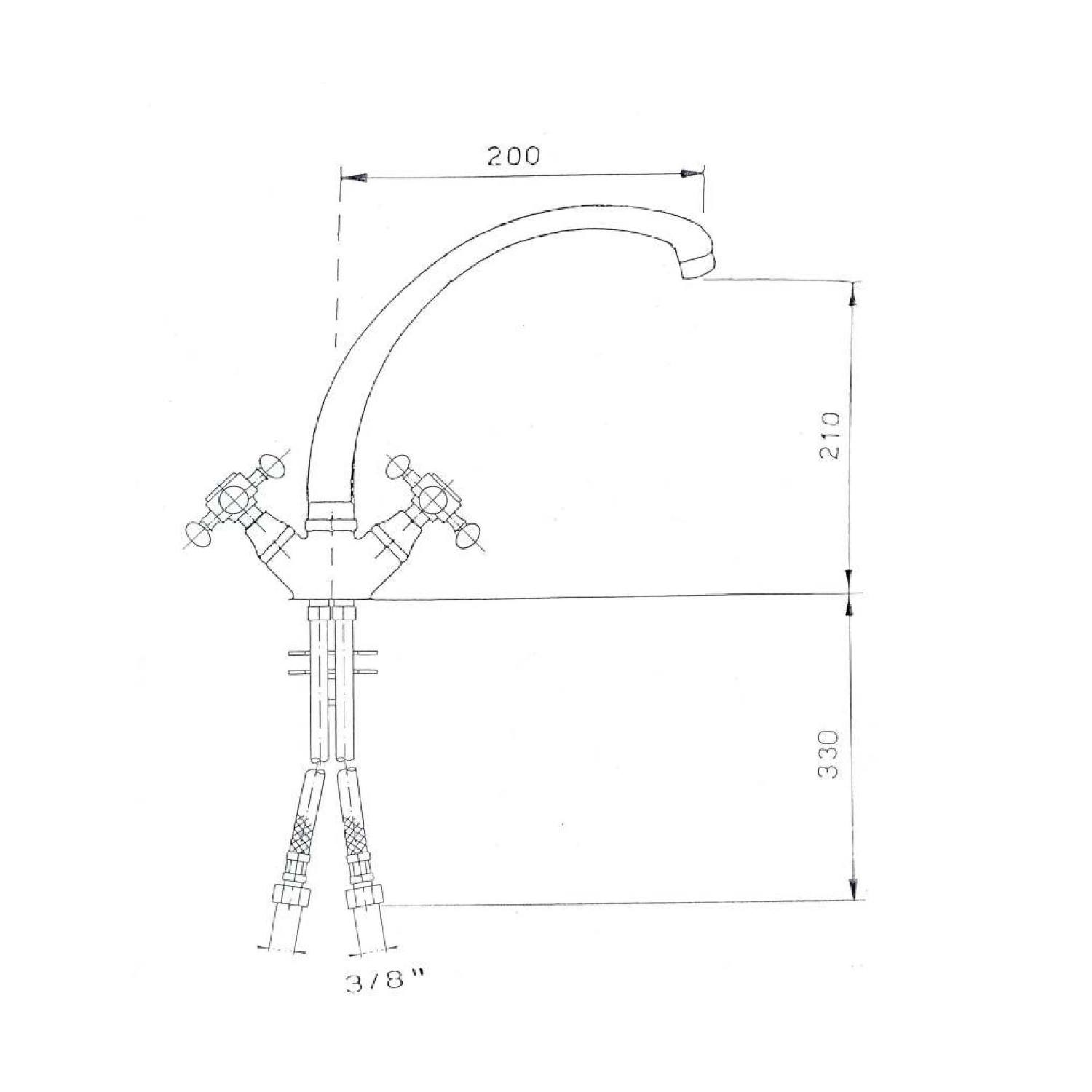 De uitloop heeft een hoogte van 21 cm en een lengte van 20 cm. De mengkraan is voorzien van een 3/8 inch aansluiting.