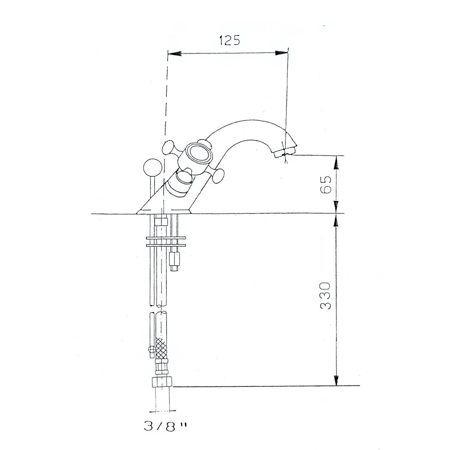 De uitloop heeft een hoogte van 6.5 cm en een diepte van 12.5 cm. De mengkraan is voorzien van een 3/8 inch aansluiting.
