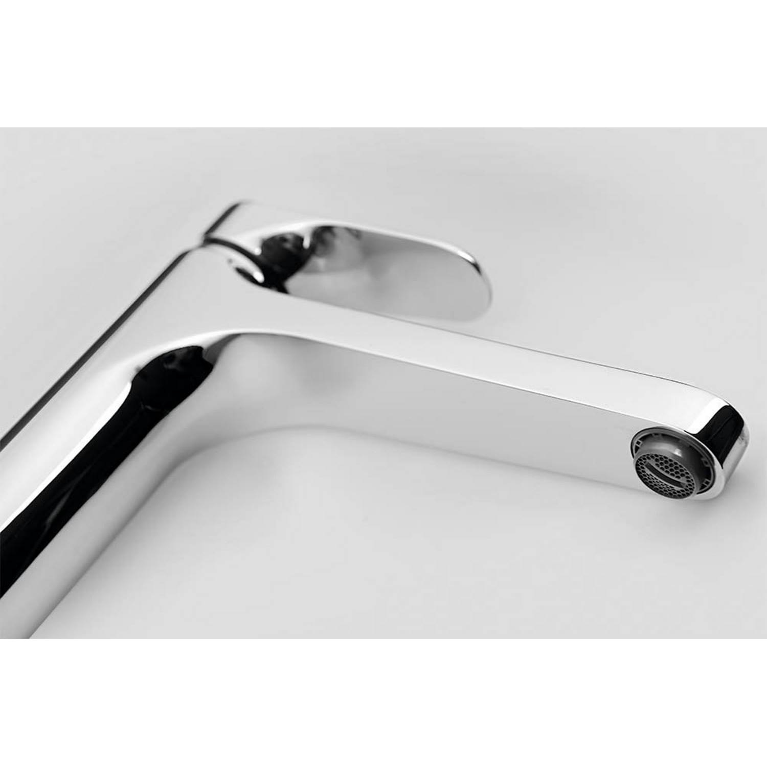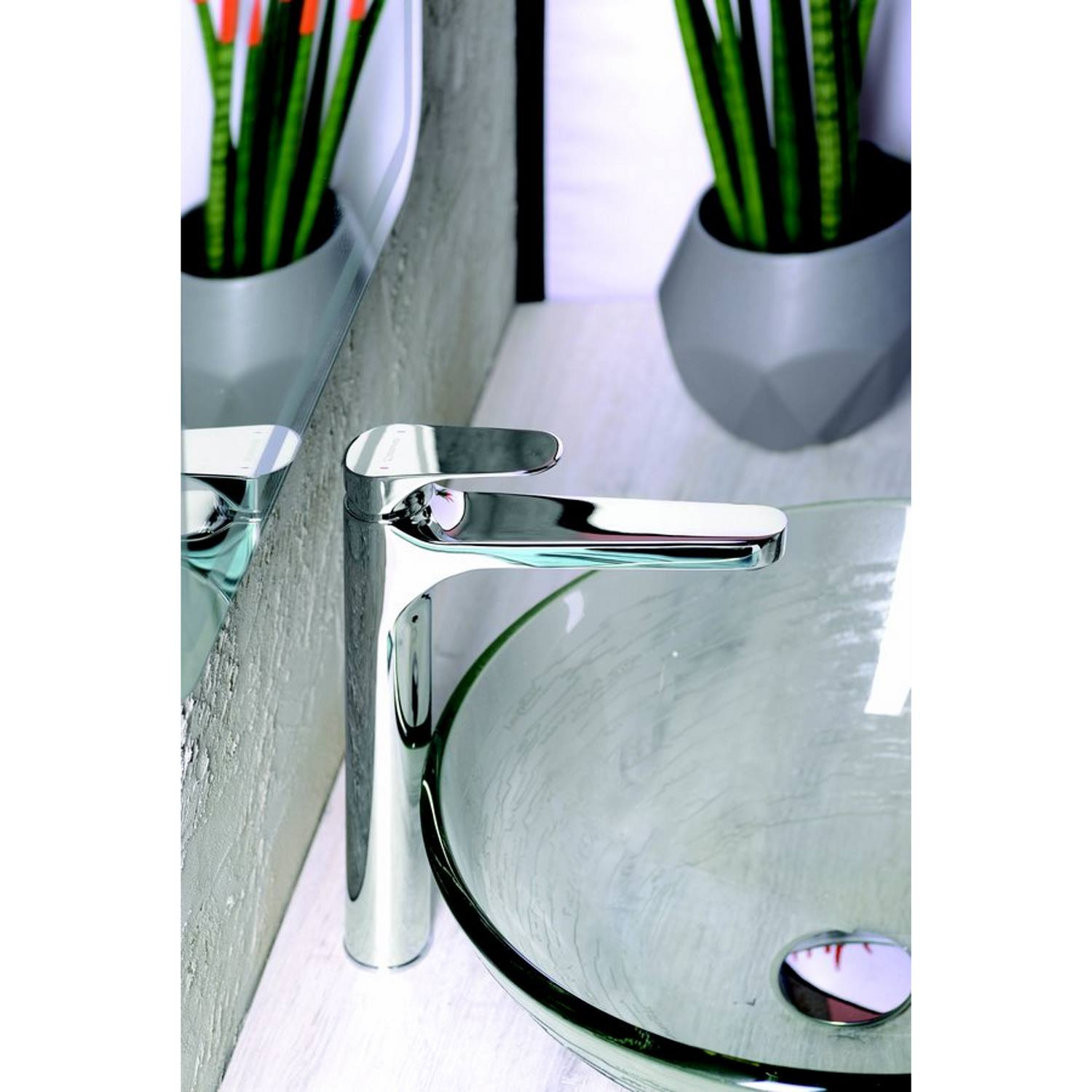 De Corneli hoge wastafelmengkraan van het merk Sapho heeft een uniek design en is geschikt voor elke moderne badkamer. De wastafelkraan is voorzien van een mengfunctie: dat houdt in dat u met de hendel warm en heet water kunt mengen tot de juiste temperatuur. U heeft geen 2 losse knoppen meer waar u mee moet stoeien om de juiste temperatuur te krijgen. De kraan heeft de hoogte van 30.6 cm. Ook heeft de kraan een keramisch binnenwerk, dit houdt de hendel jarenlang soepel in zijn beweging om water door te laten en de kraan goed te sluiten. De praktische kraan is afgewerkt in een chromen kleur.