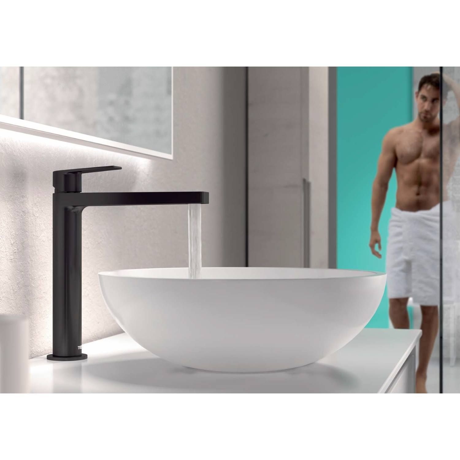 Deze wastafelmengkraan is een echte beauty! Een zwarte mengkraan van Tres is de eyecatcher van uw badkamer! In combinatie met andere zwarte elementen creëert u een badkamer rijk aan design! De wastafelkraan is voorzien van een mengfunctie: dat houdt in dat u met de hendel warm en heet water kunt mengen tot de juiste temperatuur. U heeft geen 2 losse knoppen meer waar u mee moet stoeien om de juiste temperatuur te krijgen. De kraan heeft een keramisch binnenwerk, dit houdt de hendel jarenlang soepel in zijn beweging om water door te laten en de kraan goed te sluiten.