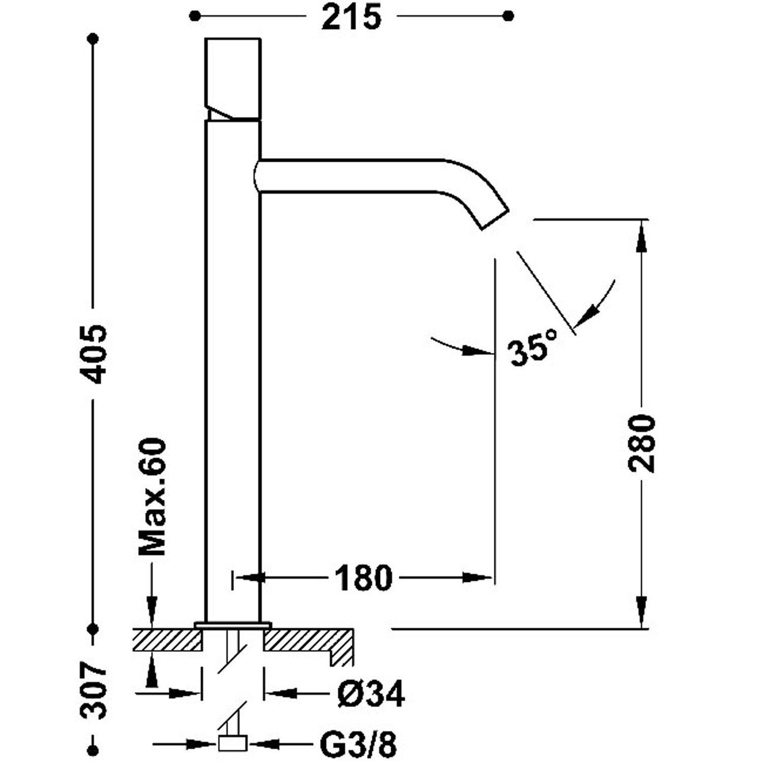 De kraan heeft een hoogte van 40,5 cm en een diepte van 21,5 cm. De uitloop is 28 cm hoog en 18 cm lang. De kraan heeft een 3/8" aansluiting. Hij is van messing in de kleur Rose goud. Dit geeft uw badkamer een luxueuze touch.
