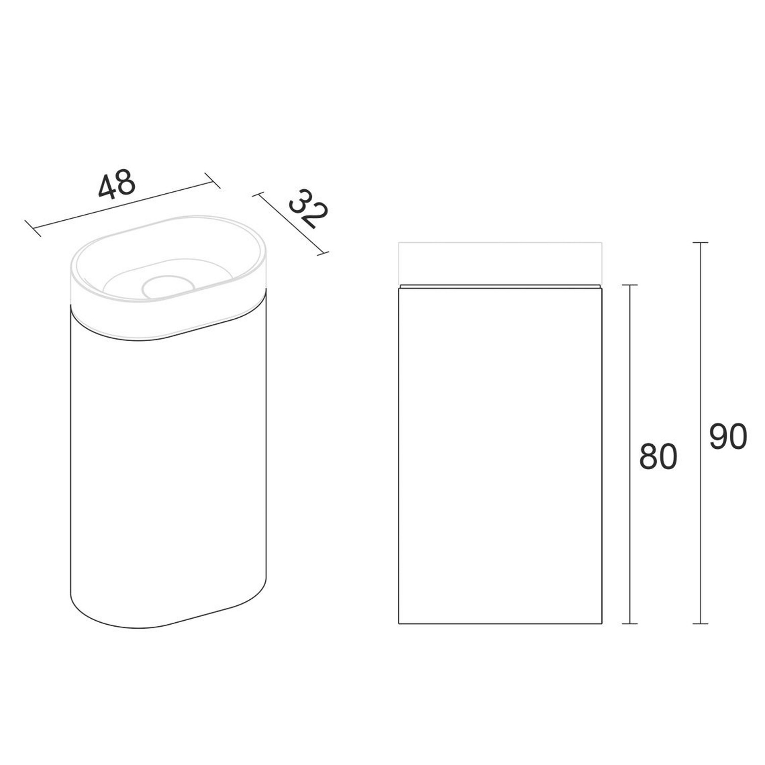 De wastafelzuil heeft een breedte van 48 cm en een diepte van 32 cm. De zuil is 80 cm hoog.