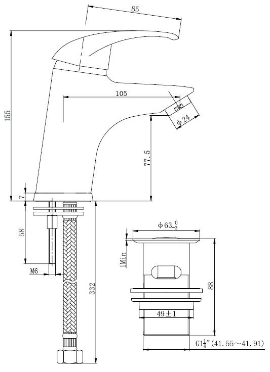 Athos KIWA wastafelmengkraan + klikwaste chroom