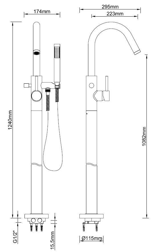 Wiesbaden Caral vrijstaande badmengkraan compleet geb.staal
