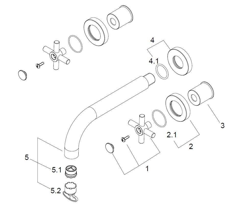 Cross 2-knops wastafel-afbouwdeel, Te combineren met inbouwdeel 29.3100, inclusief 2 bedieningsknoppen en een uitloop van 20cm, chroom, , LET OP: Het inbouwdeel 29.3100 dient apart besteld te worden!,
