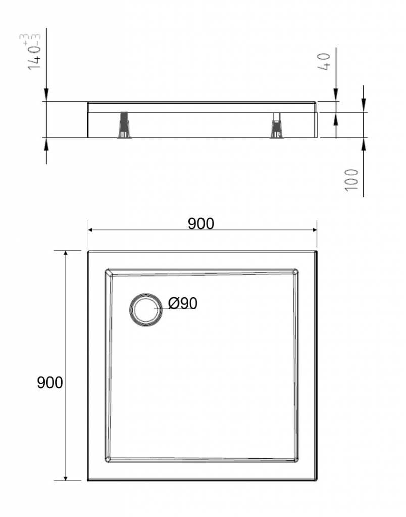 Wiesbaden douchebak, vierkant, acryl, 90x90x4, wit,