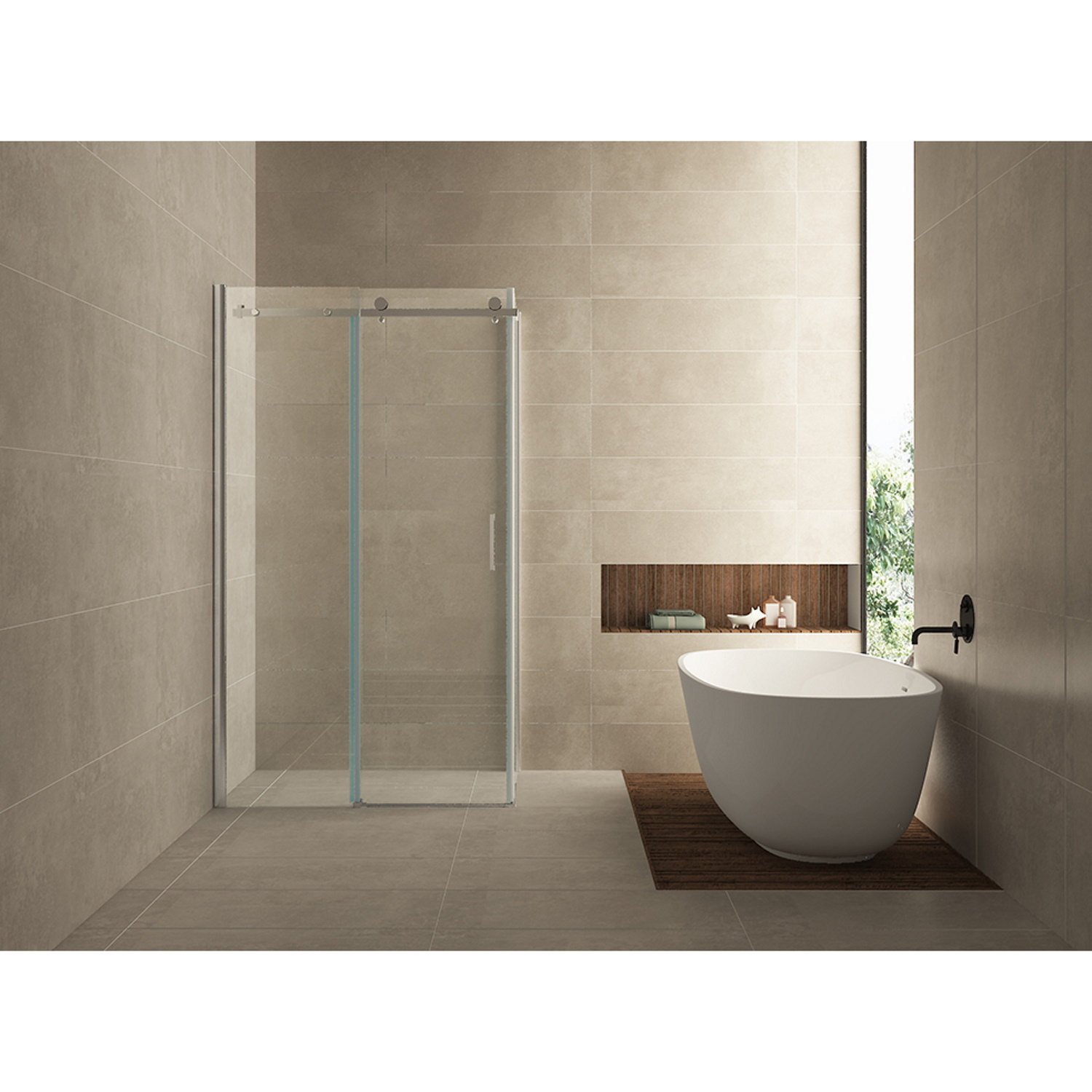 Zeer fraaie douche-schuifdeur met zijwand.