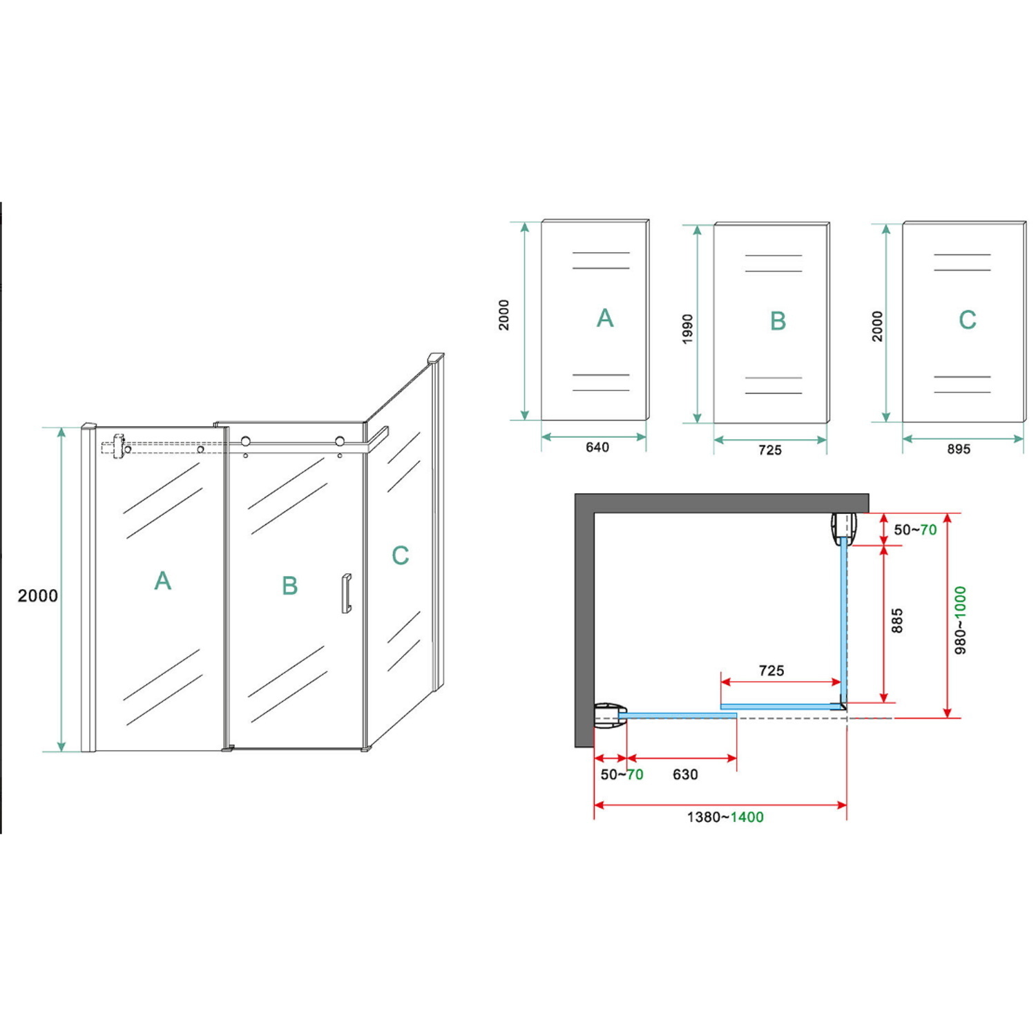 Deur 140cm, wand 100cm en 200cm hoog