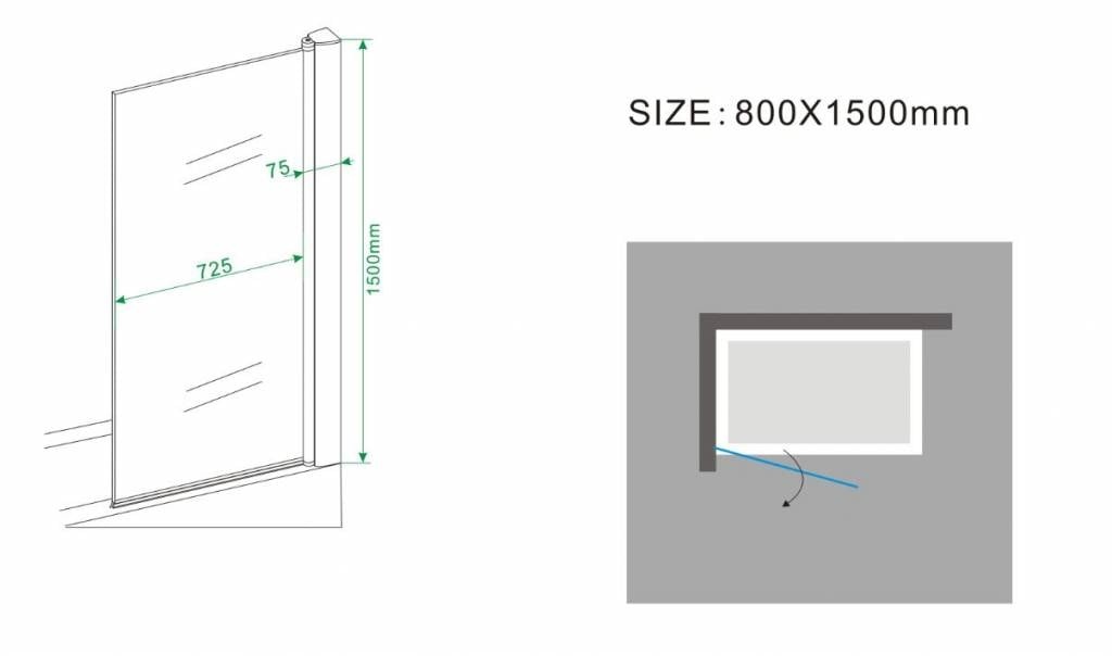 Wiesbaden draaibare badwand , Zeer fraaie badwand. Hoogte 150cm en 80cm breed, inclusief 1 chroom wand profiel welke 20mm verstelbaar is. Glas 6mm dik met NANO, Draaibaar,
