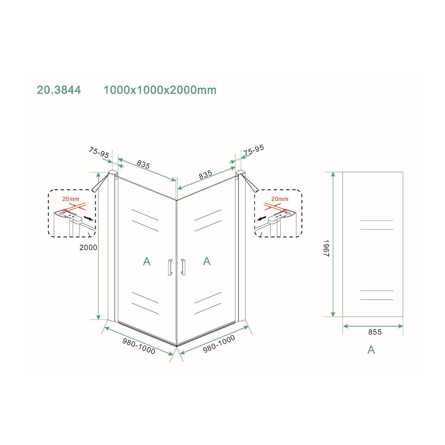 Zeer fraaie cabine bestaande uit 2x swingdeuren 100cm en 200cm hoog