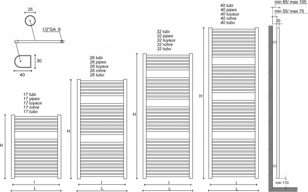 Heka sierradiator antraciet 1817x450 <br/> Horizontale buisd...