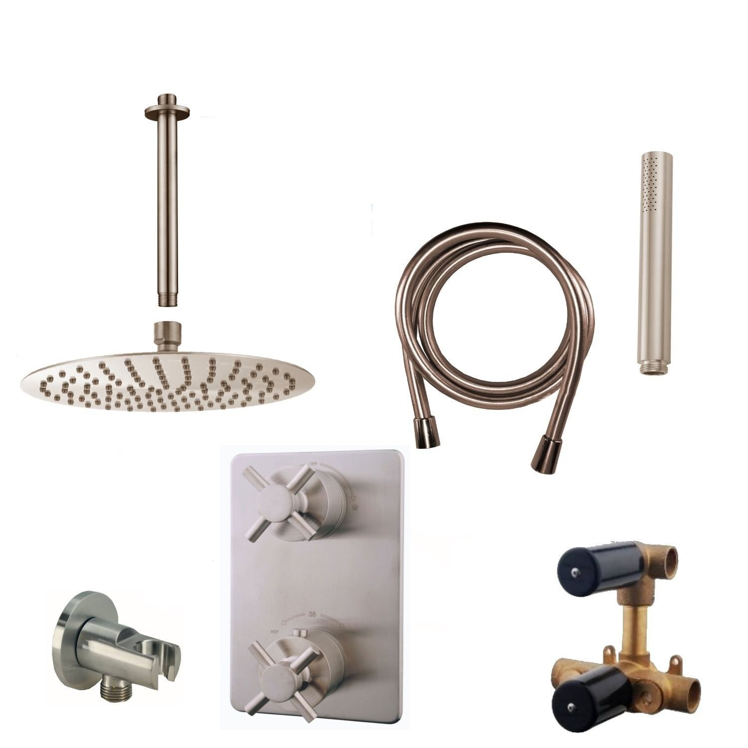 Inbouwthermostaat kranen van het merk Wiesbaden staan garant voor kwaliteit en design. Deze set bevat alles wat uw nodig heeft om uw douche compleet te maken. Dankzij de keramische schijven heeft de kraan een soepele beweging van de knoppen. Het design zorgt voor een mooie uitstraling in uw badkamer.