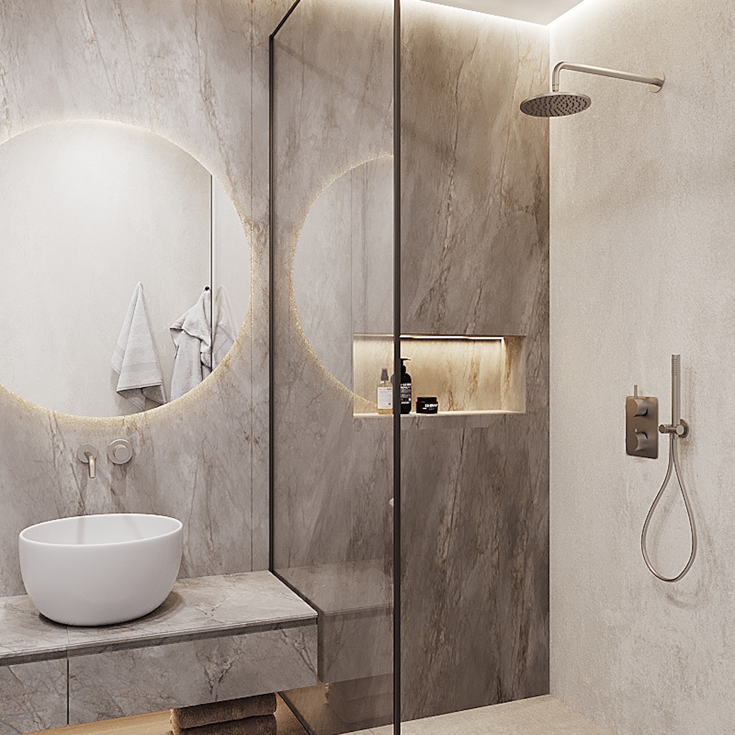 In de set kunt u kiezen uit verschillende regendouches en handdouchehouders. Er zijn verschillen in lengtes en in en vormen: vierkant en rond.