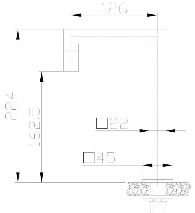 Kappa toiletkraan staand hoekig vierkant chroom, Messing verchroomde uitvoering, 1/2" aansluiting, bediening met de straalbreker. Kunststof sleutel om de straalbreker te verwijderen is meegeleverd.