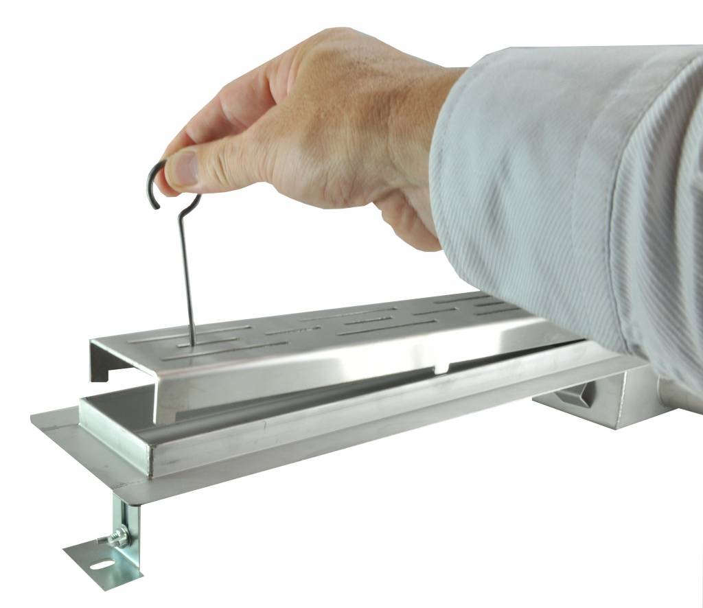 De gehaakte sleutel zakt makkelijk door een van de gaatjes in het rooster waarna u deze kunt draaien om het rooster weer omhoog te trekken.