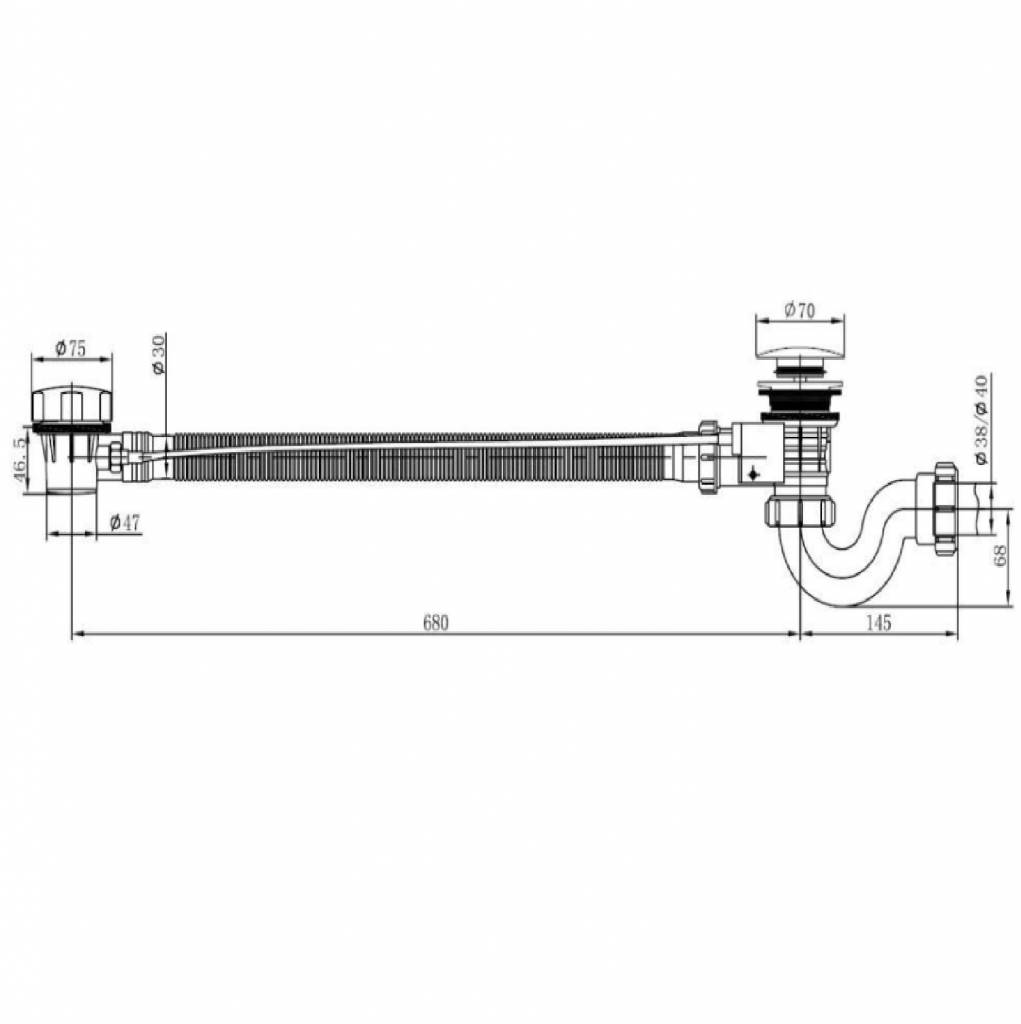 Een badplug met overloop aansluiting, de flexibele buis die de afvoer en overloop verbindt zorgt ervoor dat als u op de afvoer staat, deze niet afbreekt.