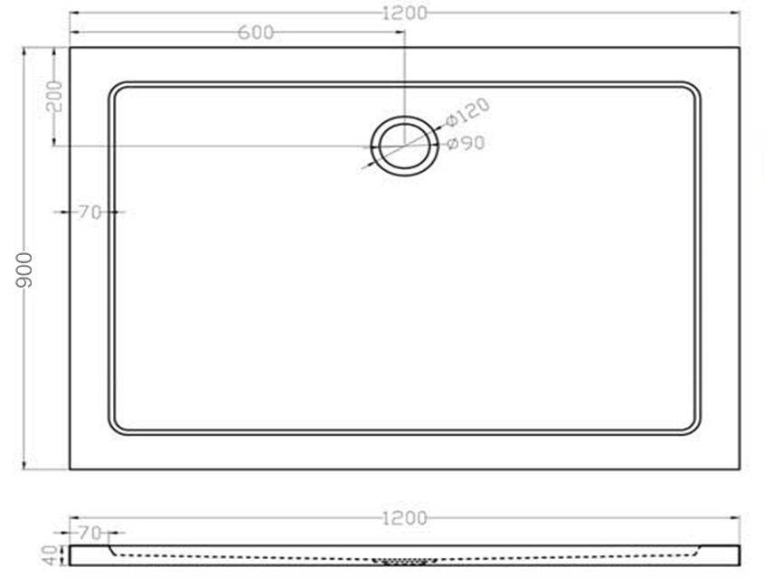 Luxe douchebak SMC rechthoek 1200x900x4 wit