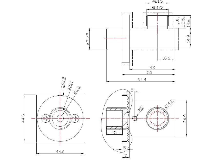 Luxe mess. muur doucheaansluiting vierkant 1/2" chroom