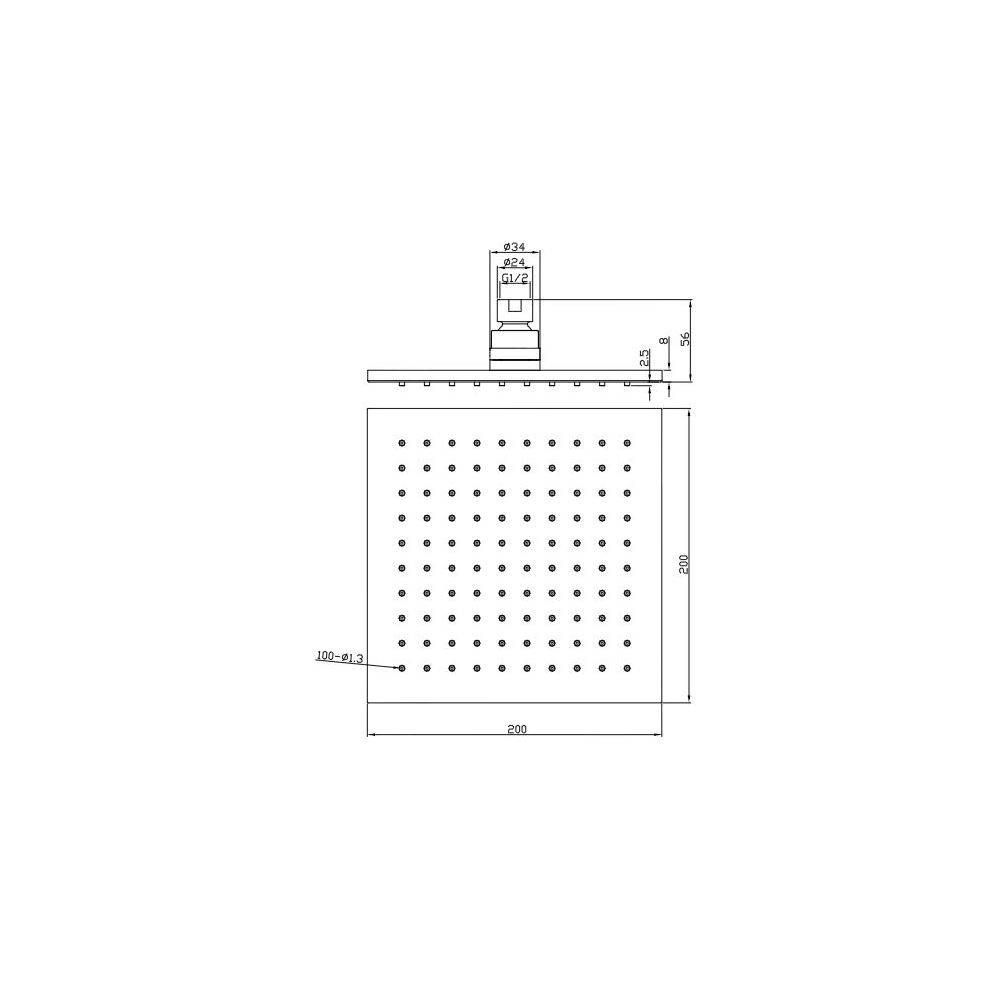 Luxe Mess.Hoofddouche Vierkant 200Mmx8Mm Chroom