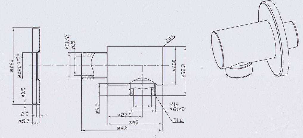 Luxe mess.muur doucheaansluiting rond 1/2" chroom