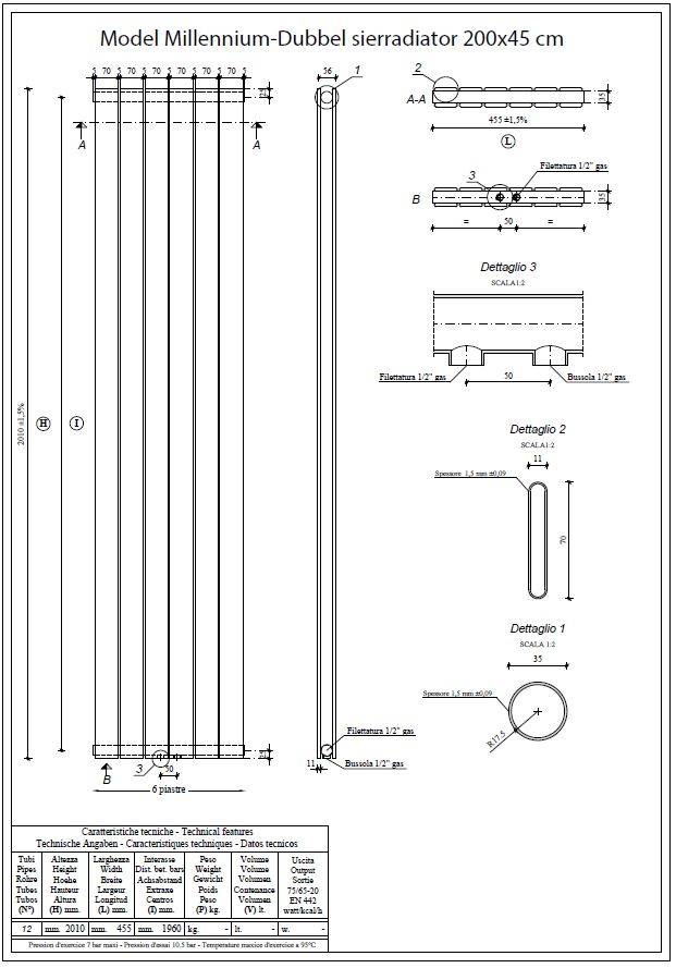 Millennium-Dubbel sierradiator 200x45 wit 1461 watt (volgens EN-442 Norm) 12 elementen (6 voor en 6 achter) 2 jaar garantie Kleur: RAL 9010 wit Inclusief ophangset