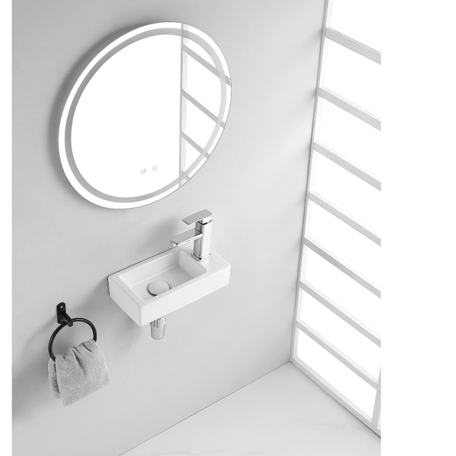 Een witte fontein met ronde vormen, zorgend voor een moderne look op uw toilet of badkamer.
