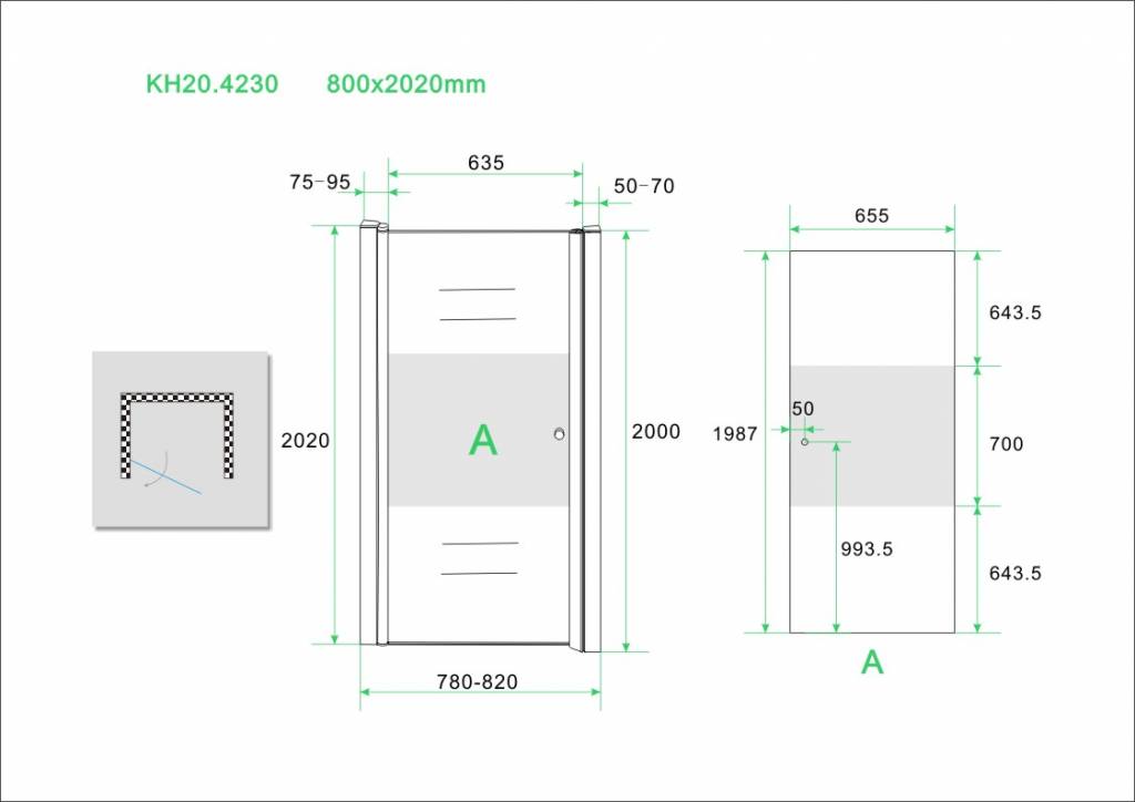 Nisdeur met profiel 800x2020 8mm NANO glas