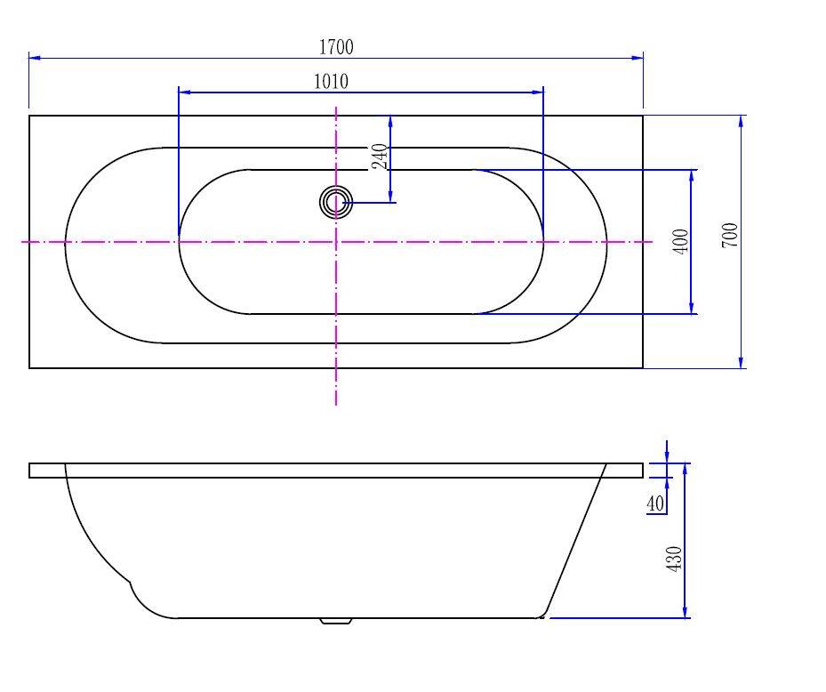 Ligbad Wiesbaden Portus RD Inbouw 170x70x43 cm Glans Wit